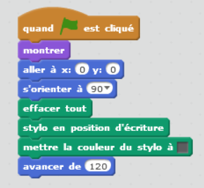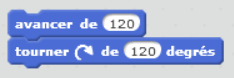 Vous savez qu'il va falloir que vous répétiez pour chaque coté ce déplacement de 120 pas et une rotation dans un sens de 120 degrés (pour que l'angle entre les 2 segments soit bien de 60 °).